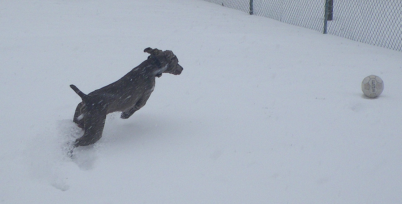It's Pretzel's first blizzard! You can tell the snow was blowing sideways in the photos, I took as many as I could before my fingers started to freeze. It was only 11am, and more snow came down all day long. Gotta love Ohio!